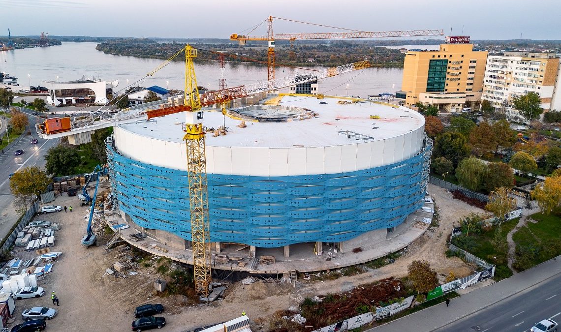 Lucrările la Sala Polivalentă Tulcea continuă într-un ritm susținut. După montarea cubului multimedia din interiorul sălii, la momentul de față, se lucrează intens în toate zonele, de la finisaje și instalații, până la ultimele ajustări tehnice.